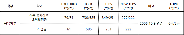 4. 대학원 음악학부 및 무용학과 합격 기준